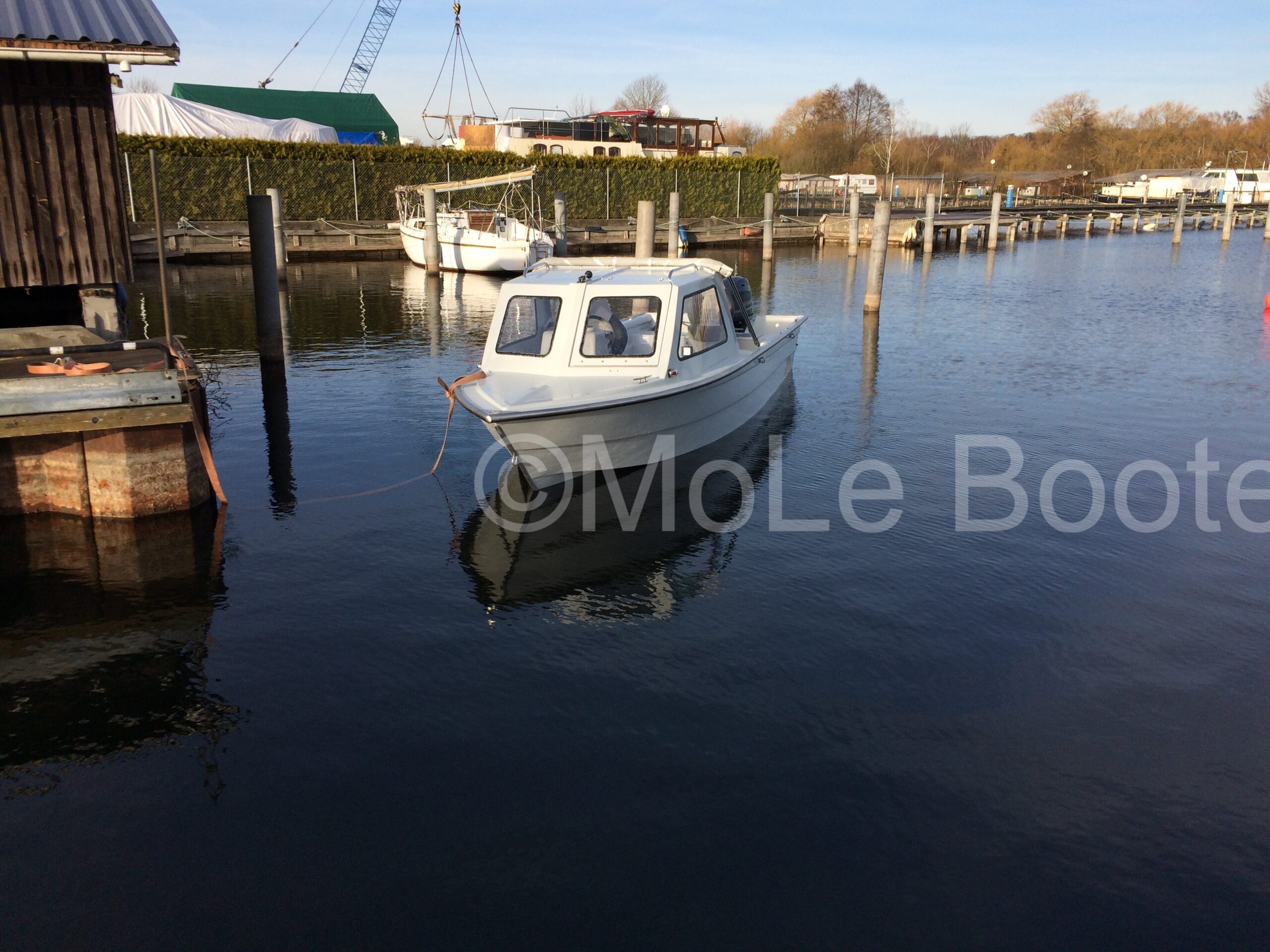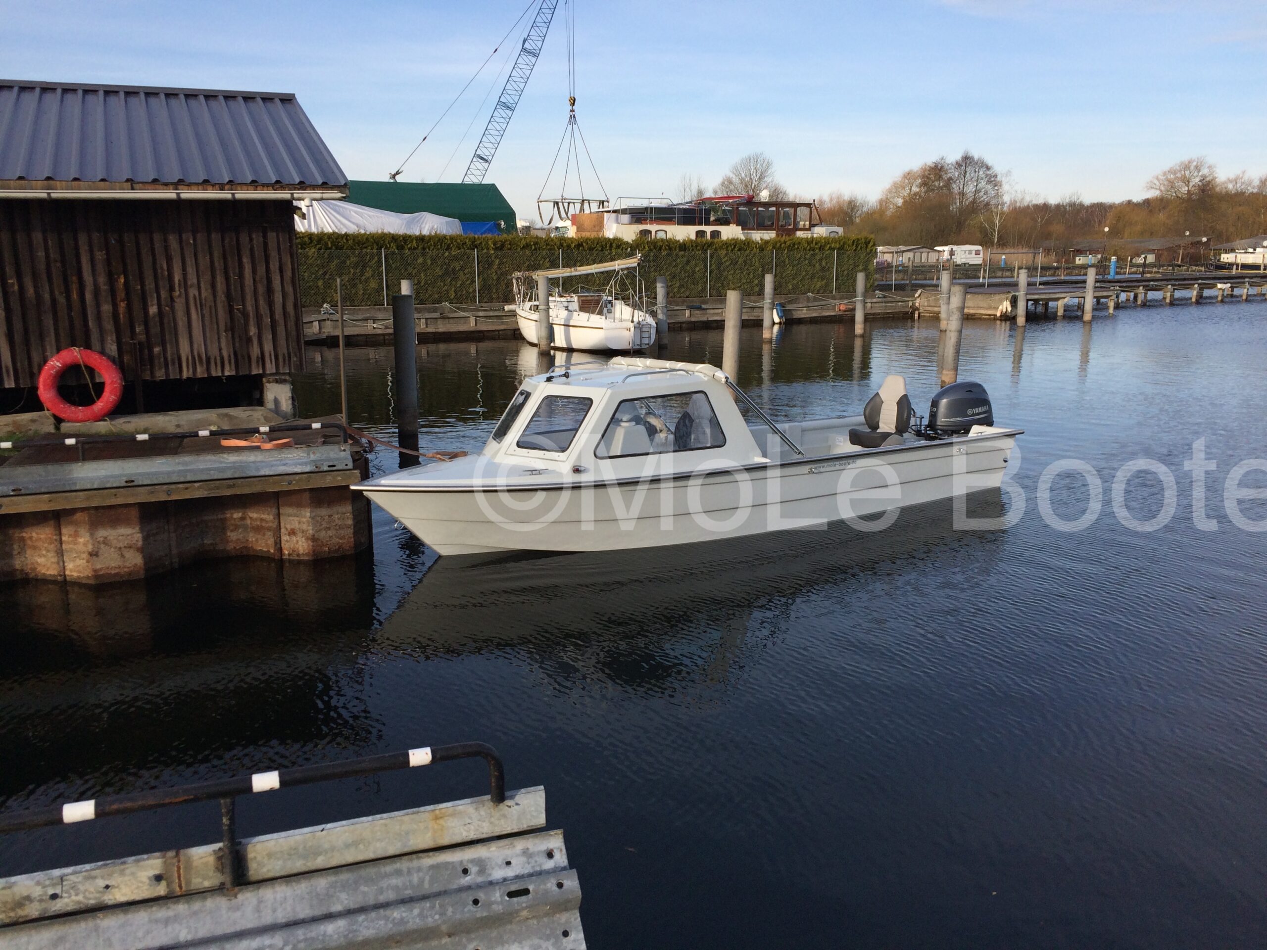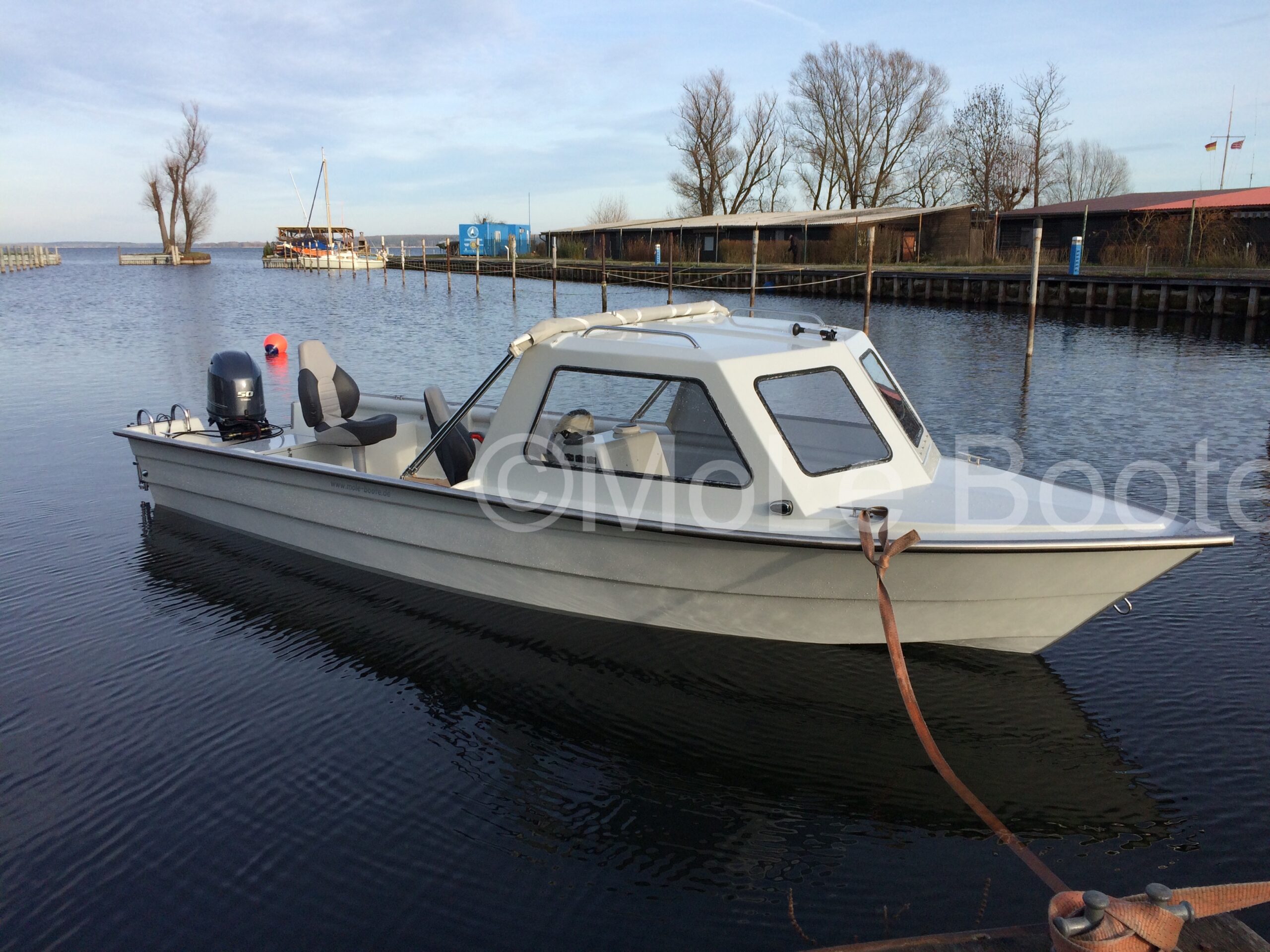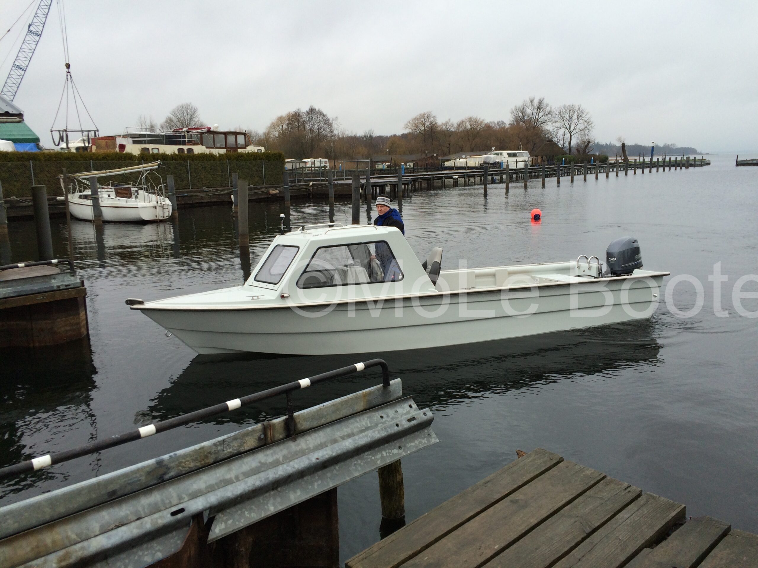 Das Modell Fischer K ist ein Kajütboot mit Schlafkabine mit festem Dach und Fronteinstieg. Multifunktional lässt sich dieses Boot auch mit Persenning als geschlossenes Kajütboot und auch mit Standheizung erweitern. Die Basis für dieses Modell bildet unser beliebtes Modell MoLe Fischer mit Knickspantrumpf und 2 Führungskielen. Der Spiegel ist verstärkt und somit für Aussenbordmotoren bis 70 PS nutzbar.