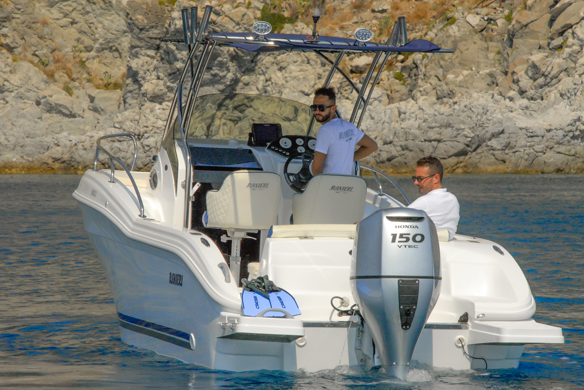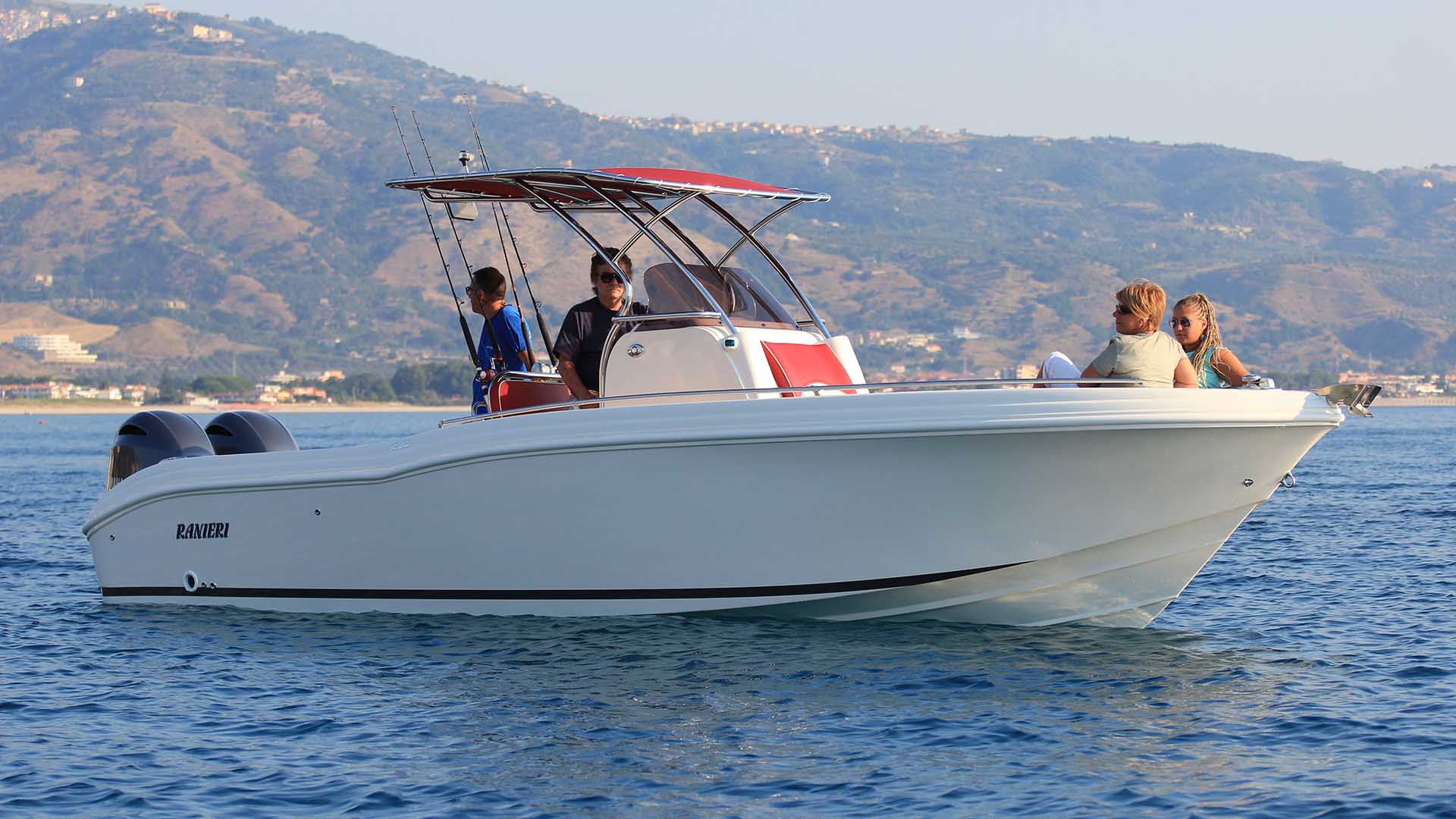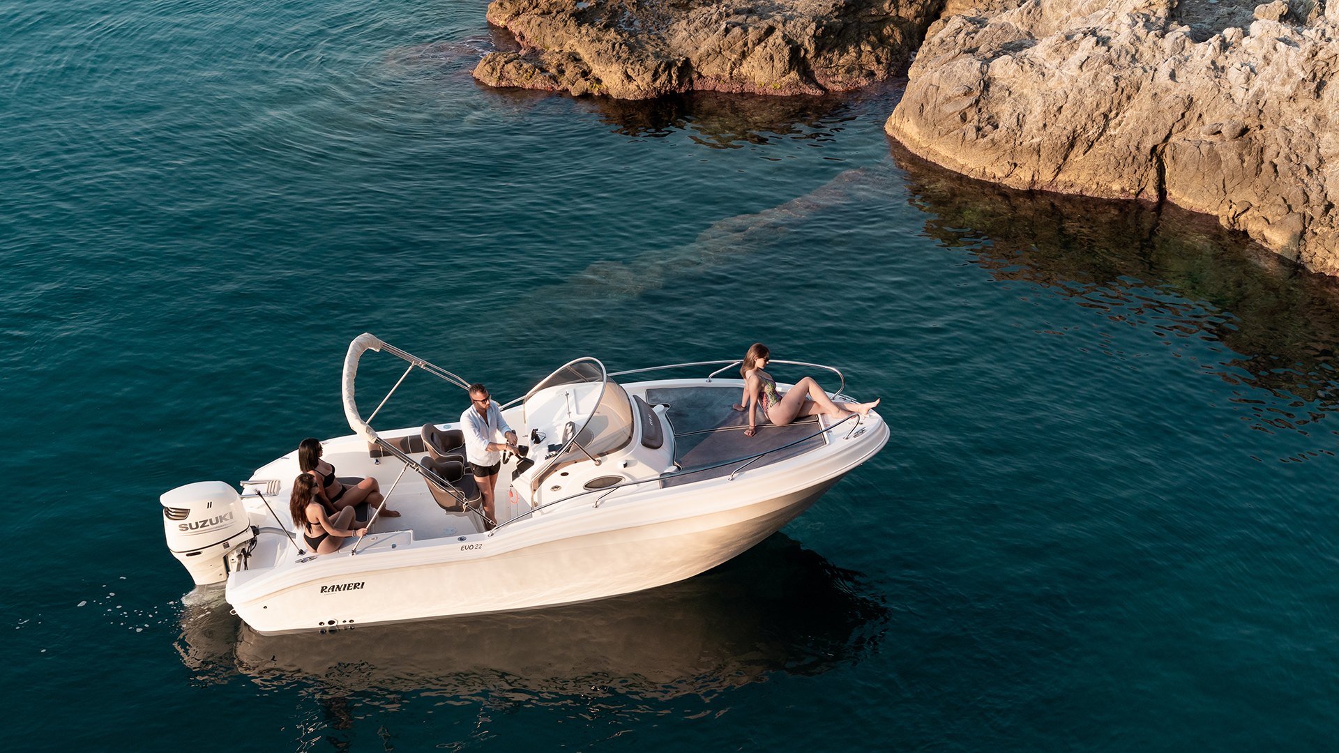 Hier erhalten Sie zwar kein handgefertigtes Unikat aus unserer Werft, dafür aber ein Serienboot mit einem ganz eigenen, unverwechselbaren Stil. Außerdem bietet Ranieri eine wirklich große Auswahl an sportlichen Motorbooten in verschiedenen Klassen und Größen an. Das Spektrum reicht von offenen Modellen und Sundeckern über Sportfischerboote bis hin zu limitierten Editionen oder der Oberklasse mit Kabine, Bad und bis zu 1.000 PS.
