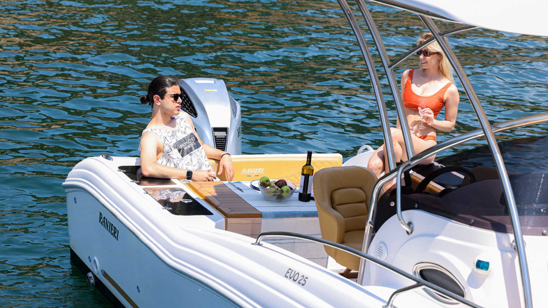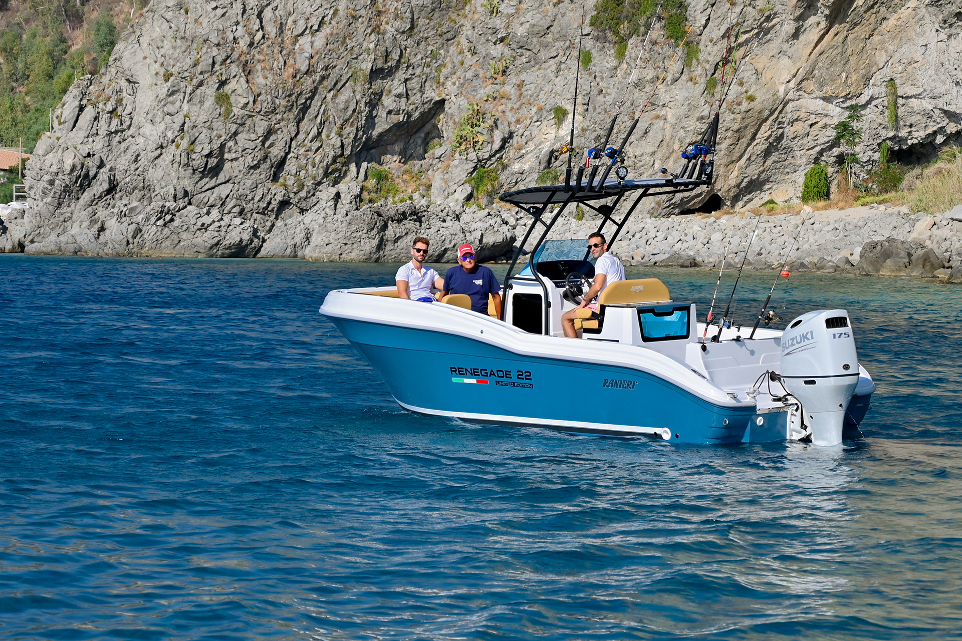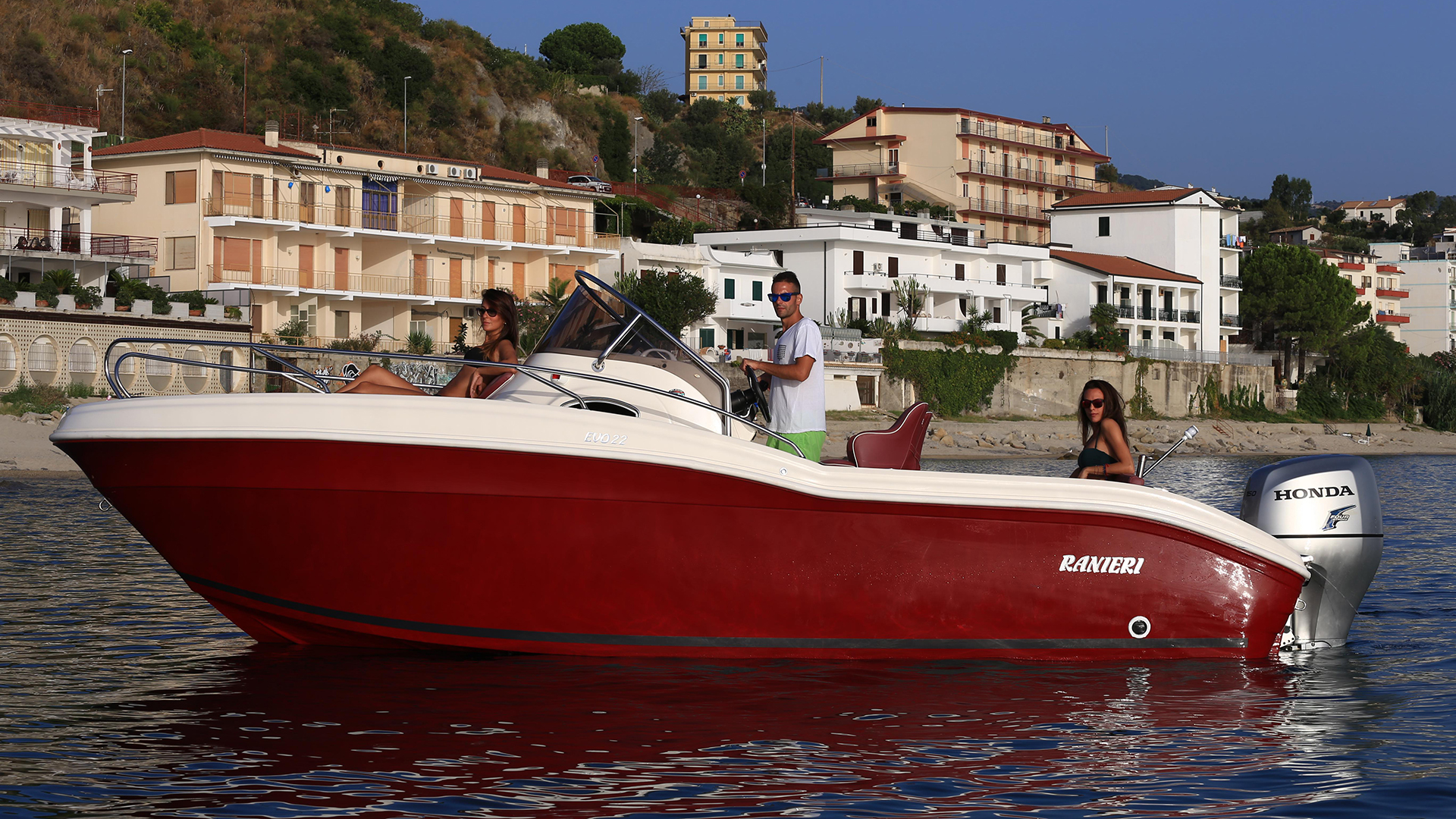 Hier erhalten Sie zwar kein handgefertigtes Unikat aus unserer Werft, dafür aber ein Serienboot mit einem ganz eigenen, unverwechselbaren Stil. Außerdem bietet Ranieri eine wirklich große Auswahl an sportlichen Motorbooten in verschiedenen Klassen und Größen an. Das Spektrum reicht von offenen Modellen und Sundeckern über Sportfischerboote bis hin zu limitierten Editionen oder der Oberklasse mit Kabine, Bad und bis zu 1.000 PS.